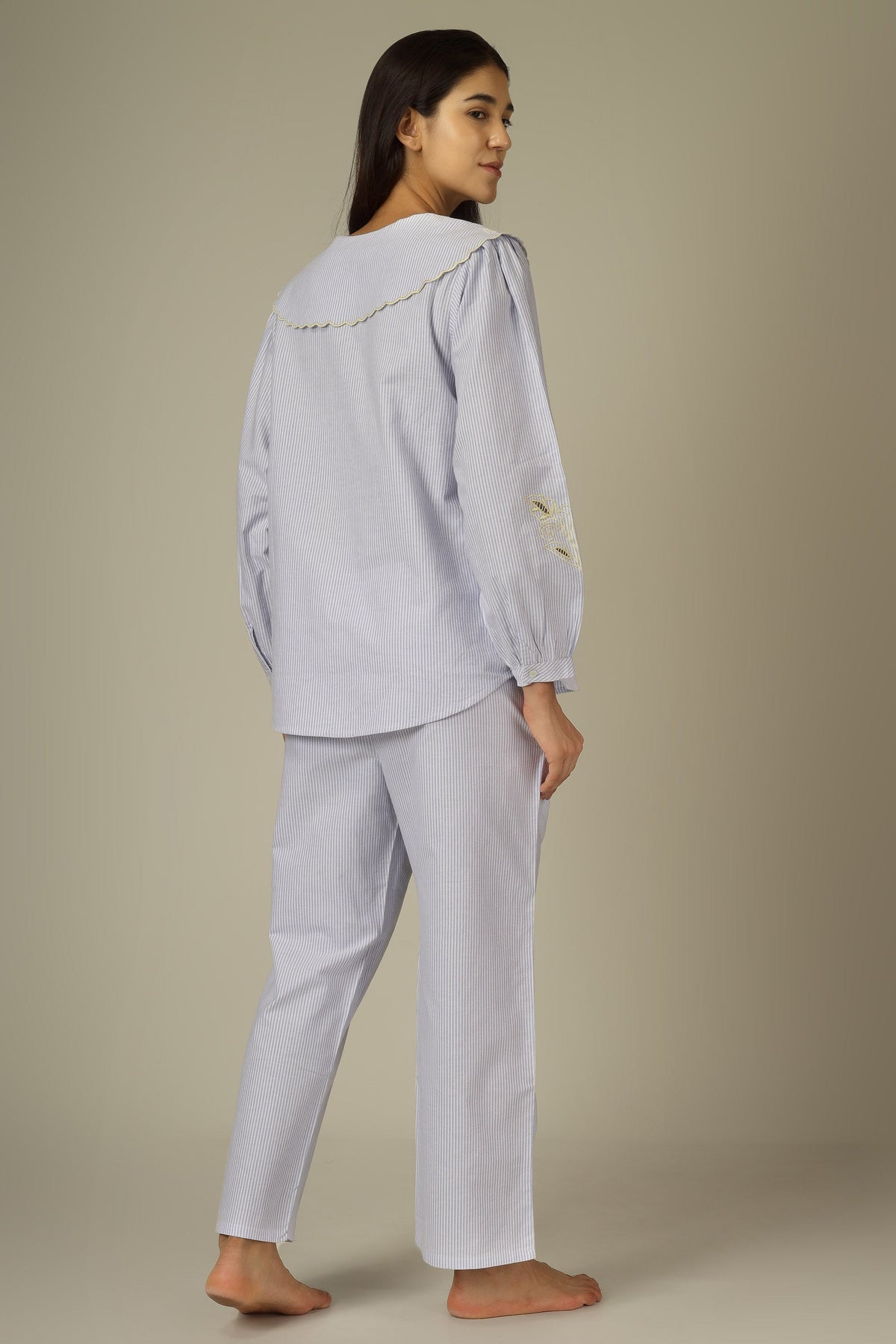 We often use elastic waist and relaxed cuts to ensure comfort. * We recommend considering your height while buying full PJ sets. For example : If you normally wear size "S" but are above avg. height , We suggest you buy size "M". * It's relaxed fit top.